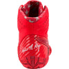 Designed with durability in mind, the New Aggressor 4 wrestling shoe is the best fitting and most durable wrestling shoe on the market. The newly redesigned Super Suede Ecsaine upper construction is durable, comfortable and provides an excellent fit. In addition to the exceptional fit, the breathable single layer mesh tongue features a less bulky version of our Integrated Lace Garage Technology for ultimate comfort. The aggressive DuoSole Outsole has molded teeth to ensure the well-balanced combination of grip and flexibility that continues to make this shoe popular among wrestling enthusiasts. The Burgundy / Classic Red print brings excitement and color, offering an all-over color story that is sure to get the wrestler noticed.
